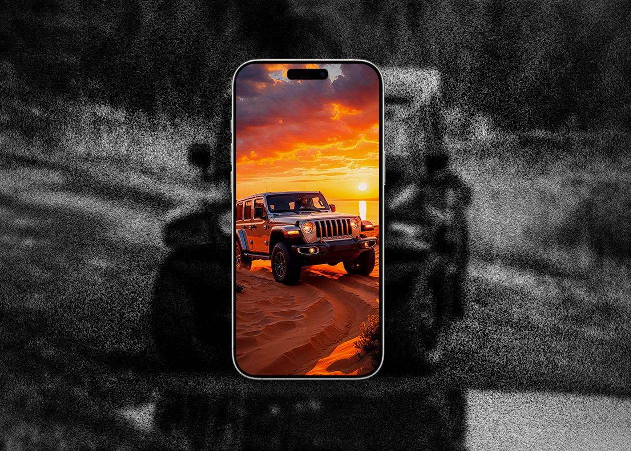 Jeeps are known for off-road adventures. Therefore, fuel your wanderlust every time you unlock your phone with this iconic Jeep Wrangler on sand wallpaper.