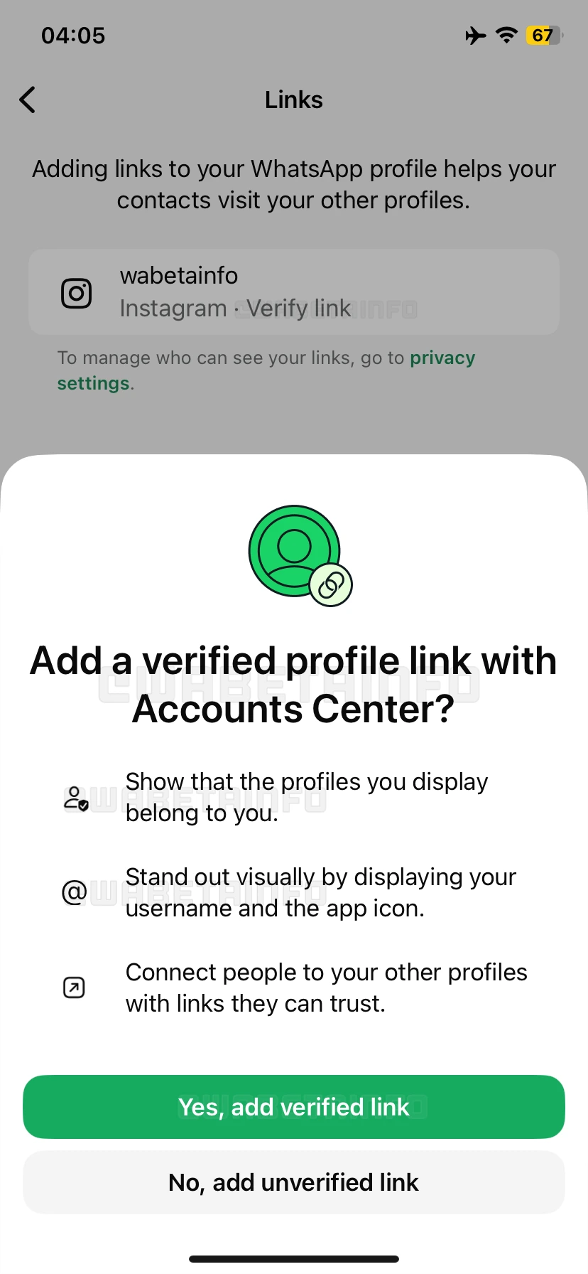 The upcoming version changes the process. Instead of typing in a username, users would go through an ownership verification step. Once approved, the Instagram link would display with a “verified” label, signaling that it’s genuinely tied to the WhatsApp account holder.